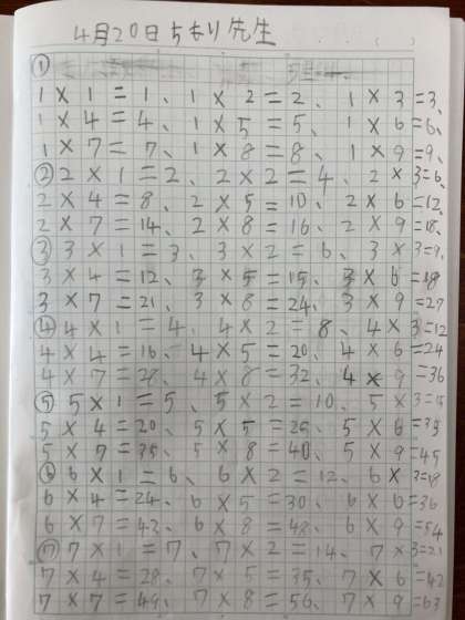 また、自主学習プリントを引き出しの中に用意し、色々な段の九九や穴あき九九などのプリントを入れています。答えも入れています。さっそく、10名ほど進んで取り組んでいます。3年生での算数の学習内容の定着が高学年での算数を学習する上で本当に重要になってきます!