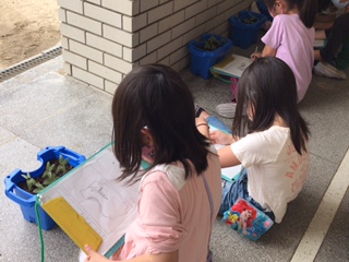子どもたちは芽が出たことを喜びながら、かんさつカードにふたばの様子を描きました。「6こぜんぶめがでた!」「さわったらちょっとちくちくした」「はっぱにあかいせんがある!」と、観察して見つけたことをたくさん教えてくれました。これから、どんな風にあさがおが育っていくのか楽しみですね!