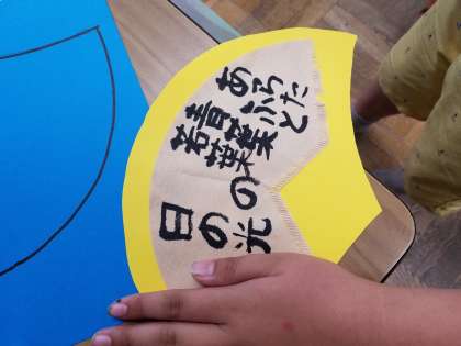 普段小筆は、名前を書くときにしか使わないため使い慣れていないのか、苦戦する様子もみられました。しかし、出来上がった作品を見るとどの子も「なかなかえぇやん」と満足気でした。