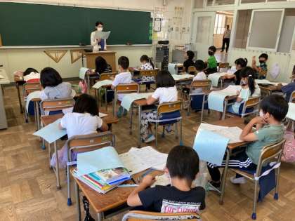 始業式の後は、各学級で通知表をもらったり、夏休みの宿題の確認をしながら過ごし方についての説明を受けました。また、1学期の間使った教室を大掃除している学級もありました。