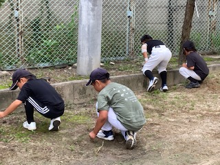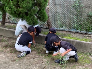城北ユニオンズが、体育倉庫の近くの草引きをしてくれました。学校内がきれいになると気持ちが良いですね。明日の始業式を気持ちよく迎えられます。