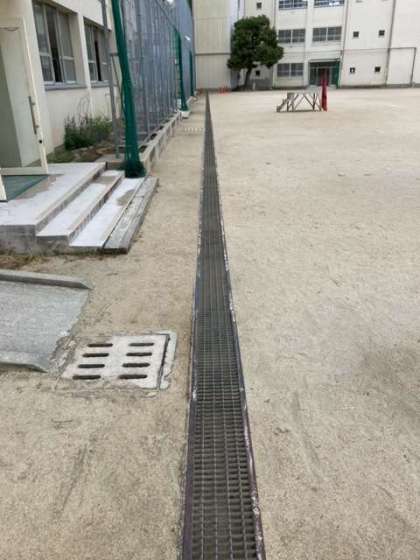 運動場の側溝の泥上げと、1号館、2号館1階のトイレを洋式に変えました。