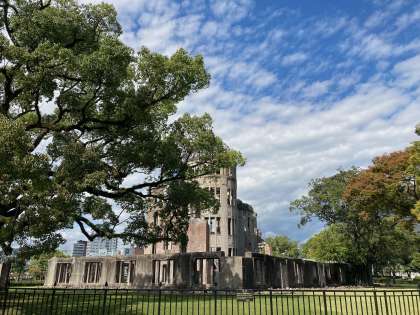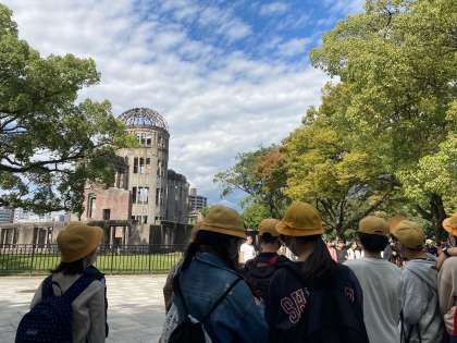 まずは、原爆ドーム前で集合写真の撮影です。