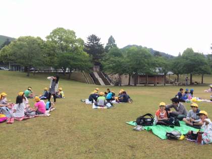 大きな芝生の上で、友だちと仲良くお弁当を食べることができました。