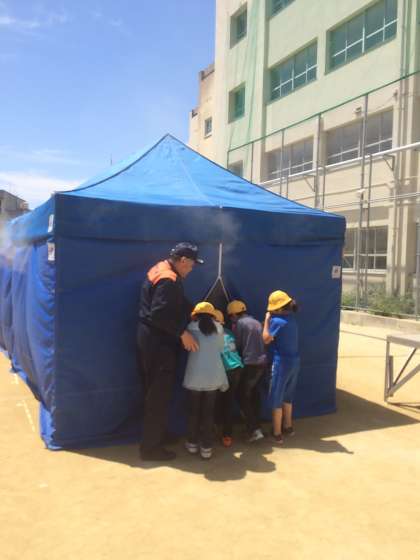 実際に火事が起こった時に、どのような状態かを体験しました。