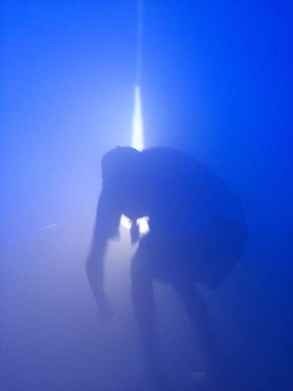 青いテントの中に入ってみると、ほとんど前が見えない状態でした。