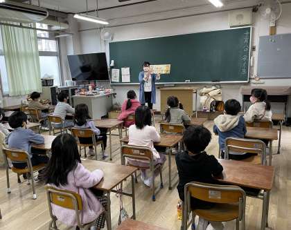 朝の時間に、絵本の読み聞かせにきていただきました。子どもたちは絵本にくぎ付けになりながら、読み聞かせを楽しそうに聞いていました。「すきなごちそうはなあに」と質問されると、ビシッと手を挙げてたくさん発表できていました。