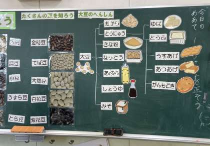その後、大豆が、いろいろな食べものに変身することも学習しました。