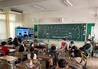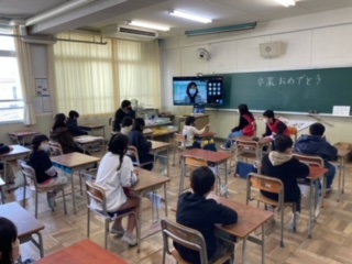 2時間目に、たてわり班で「卒業を祝う会」を行いました。本来なら講堂で一堂に会して行うところ、感染症対策のため、各たてわり班の教室で行いました。