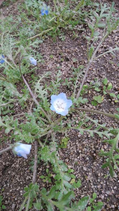 校庭の花壇に3年生の子どもたちが秋に蒔いた、小さなネモフィラが咲きました。