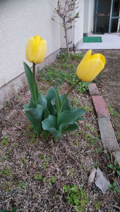 また、赤・白・黄のチューリップも。(これは2年前に咲いたチューリップの球根を再度植えたものです)