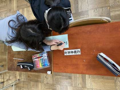 広報委員会では、初めに年間の目標を「笑顔で明るくみんながうれしくなるような委員会にしよう」に決めました。放送や新聞などで明るく笑顔になれるような発信をしていきます。