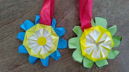 2年生にもらったメダルを、首にかけてもらってうれしそうでした。