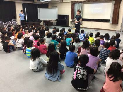 1時間目に講堂で平和集会を行った後、1・2年生はDVD「とびうおのぼうやはびょうきです」を鑑賞しました。