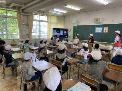 Microsoft teamsを使って、代表委員の児童が行いました。