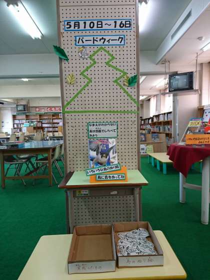 5月10日〜16日の愛鳥週間に合わせて、図書室にすてきな掲示物を準備してくださいました。鳥のぬり絵を図書室に準備しているので、色鉛筆を持って図書室に来てくださいね。図書室をかわいい鳥さんでいっぱいにできるといいなと思います。