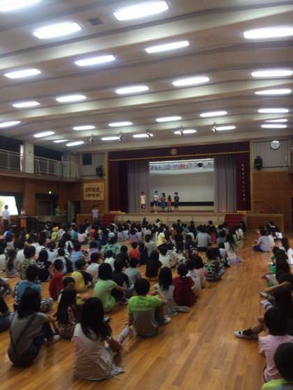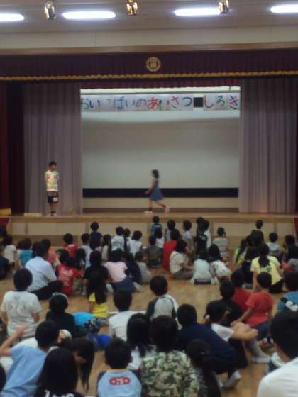 集会委員会の子どもが、2度舞台の上を歩きます。