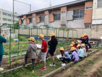 4月に植え替えをした「ゴーヤ」「ヘチマ」「ヒョウタン」の観察をしました。