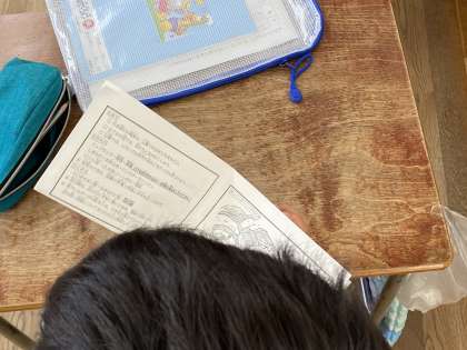 本日、全校遠足のしおりを配付しました。(3年生は社会見学のため、明日19日に配付します。)