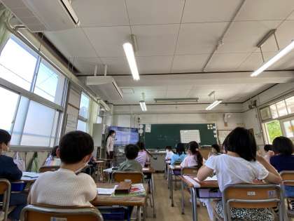 1年生は、初めての遠足です。しおりを見ながら、担任の先生の話をしっかり聞き、持ち物や約束を確認しました。「大阪城に行ったことがある!」「いつ行くの?」などとても楽しみにしているようです。