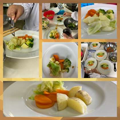 中華風ソースやフレンチソースなど班で好みのドレッシングを選んで作ります。