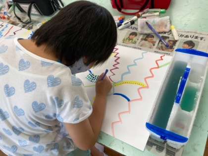 楽しそうに動く絵筆から生まれる絵の具と水のハーモニーはどれも美しく素敵な作品ばかりでした。