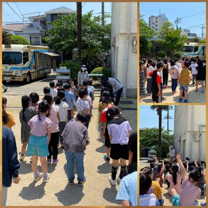 今日は、2年生が「まちかど号」の見学をさせてもらいました。