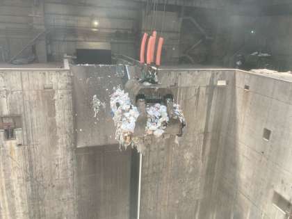 大きなバケットで、ゴミをすくいあげて混ぜたり、炉に運んだりします。