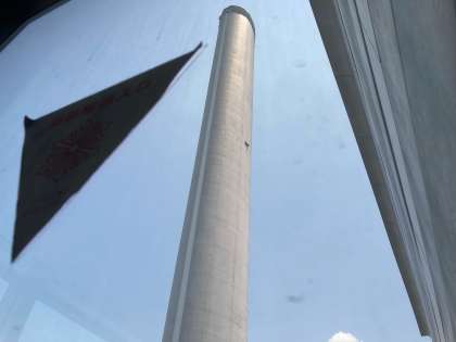 6階の窓からは、高さ100mの煙突が見えます。