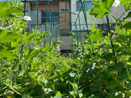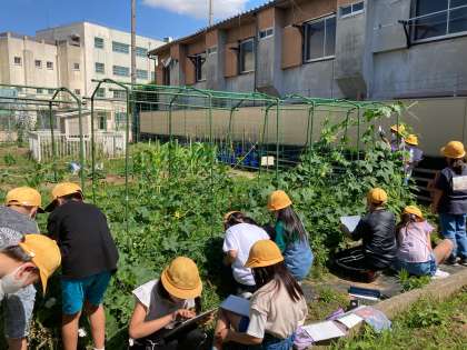 学習園に「ゴーヤ」「ヘチマ」「ヒョウタン」の観察しに行きました。