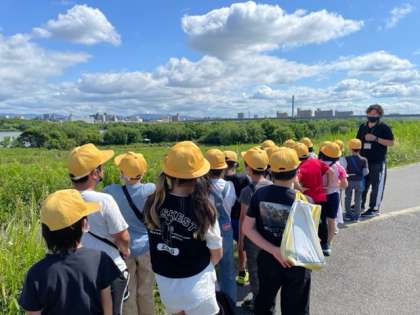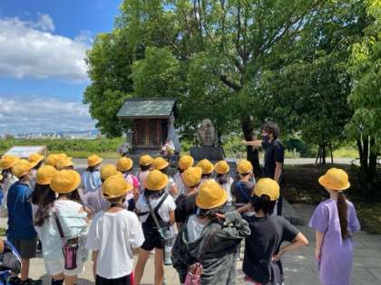 三年生は平和学習フィールドワークを行いました。赤川鉄橋の弾痕や、淀川のワンドを見たり、平和観音像や千人塚に行ったりして、私たちの住む町も戦争で大きな被害を受け、たくさんの方々が亡くなったことを知りました。
