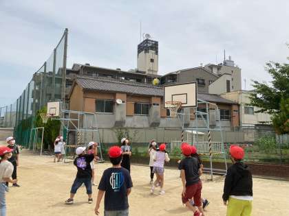 今日のみんな遊びは「バスケットボール」でした。