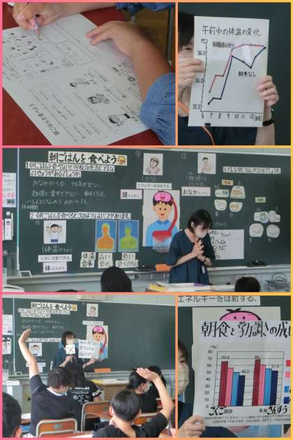 6年生は、「朝ごはんの大切さ」について、栄養教諭の方に授業をしていただきました。