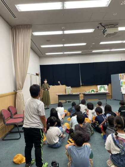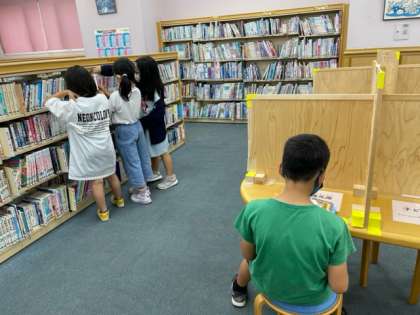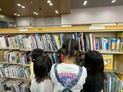 旭図書館へ見学に行きました。図書館にはどんな本が置いてあるのか、本の置き方はどうなっているのかなどを聞き、読み聞かせをしていただいた後、自由に図書館を見て回りました。