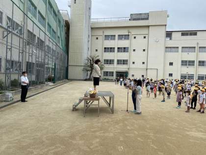 6年生の代表児童からの言葉では、竹本校長先生に保健室に連れて行っていただいた思い出や林間学舎での思い出を語り、お別れをしました。