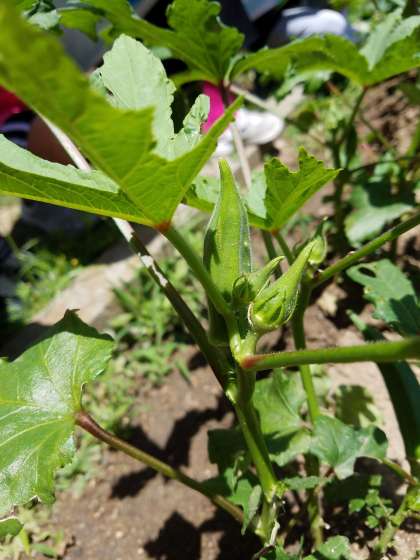 学習園のオクラとピーマンがぐんぐん育っています。収穫した実は順番に持って帰っているのですが、どのように実ができるのか、じっくり観察したことはありませんでした。