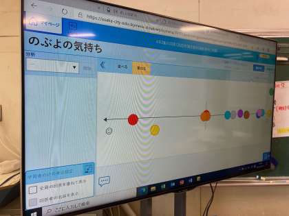 スカイメニュークラウドの「ポジショニング」というアプリを使って、中心人物の気持ちの変化を確認しました。