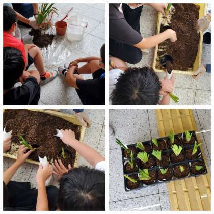 旭区役所の方から株分けをする理由を説明してもらい、1人ずつ株をポットに植えていきました。これから、水やりと観察をしっかり行い、来年きれいな花が咲くようにお世話をしていきたいと思います。