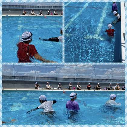 本日、5年生の着衣水泳を行いました。先日の6年生と同じく、もしも水難事故にあった際に、どのように行動すればよいか学ぶためです。