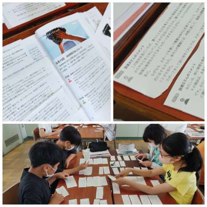 インターネットに投稿されたコメントを見て、それぞれどのような意見や主張が書かれているのかを読み比べました。「これは賛成の意見」「こっちは反対かな」と根拠となる言葉を見つけながら、班で話し合って分けていきました。