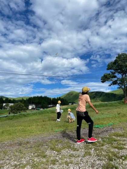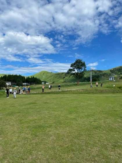 アイスクリーム作りの時間まで、みんなで高原遊びをしています。