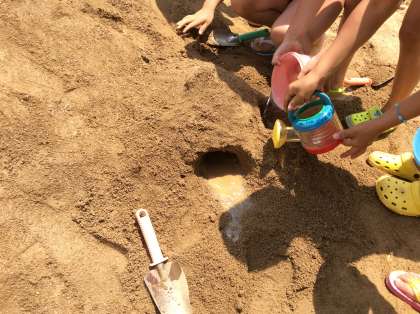 トンネルを掘って川をつくるなど、子どもたちはグループで協力して活動することができました。