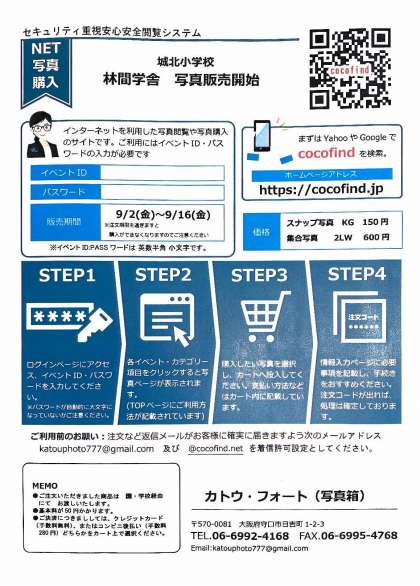 明日、9月1日(木)に、林間学舎の写真の購入用紙を配付いたします。