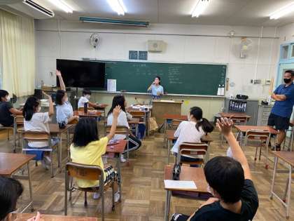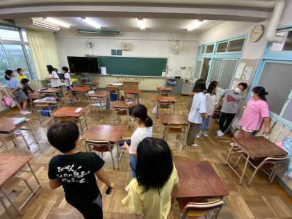 いつもの放送の中で、挨拶について呼びかける内容を考えました。