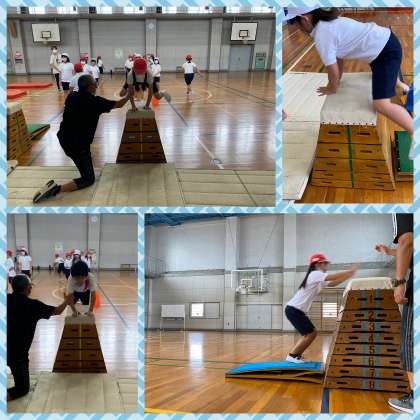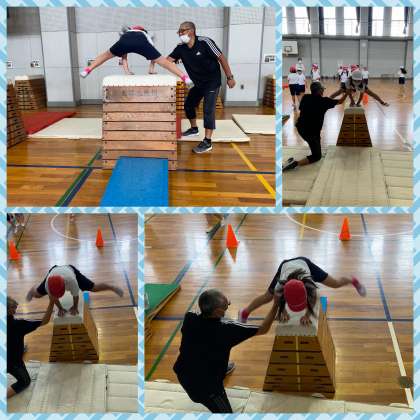 手の付き方などを注意しながら取り組むことで上手に跳ぶことができるようになりました。とび箱が苦手な児童のたくさんチャレンジする姿が見られました。