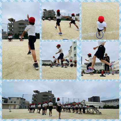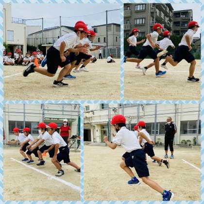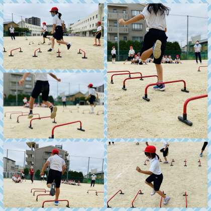 手を大きく振る練習をしたり、ミニハードルを使って足を上げる練習をしたりしました。