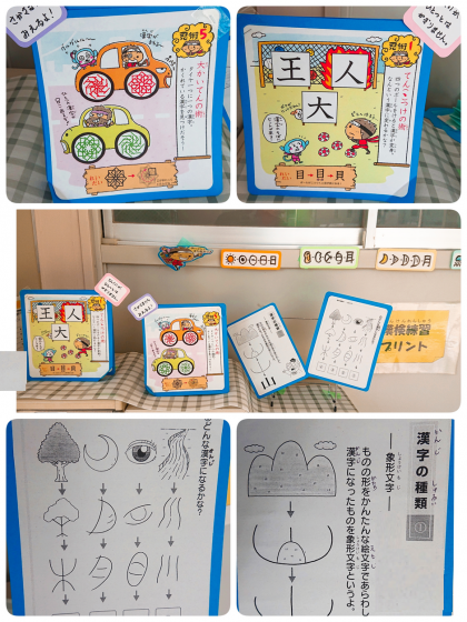 職員室前に漢検の練習用プリントが級ごとにおいてあります。