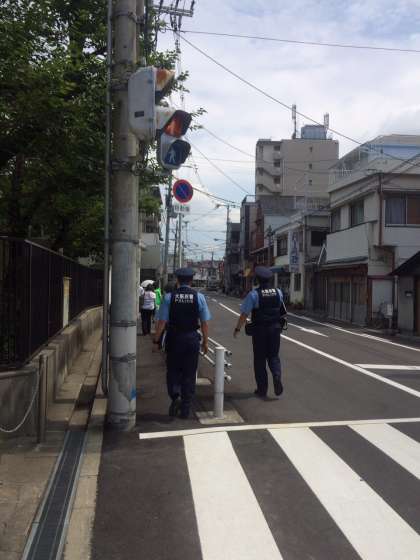 お話の後には、子どもたちが安全に過ごせるように、警察の方と一緒に校区内の危険な箇所の点検を行いました。