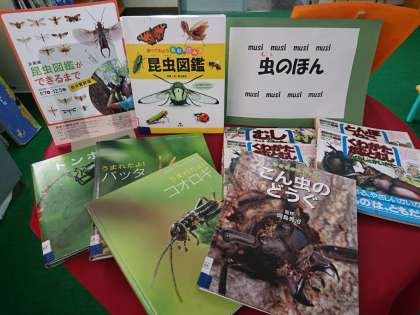 2年生や3年生が虫の学習をしているのに合わせて、学校図書館司書さんが図書室にも虫コーナーをつくってくださいました。「あ、カブトムシや」と手に取る子も多く、まだまだ虫ブームは続きそうです。