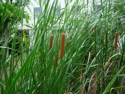 中央のソーセージのような形のものが、蒲(がま)の穂です。